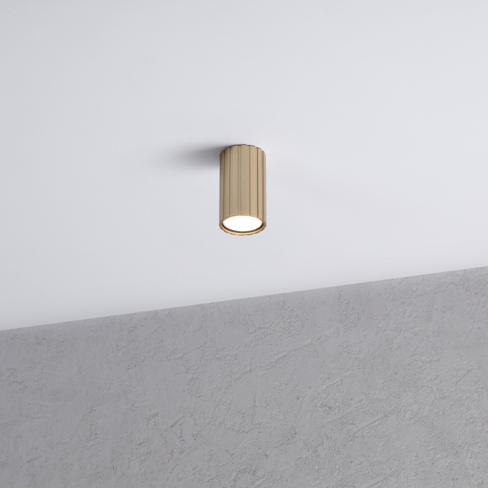 Nowoczesna lampa sufitowa PRISMA - złoty ryflowany klosz, GU10