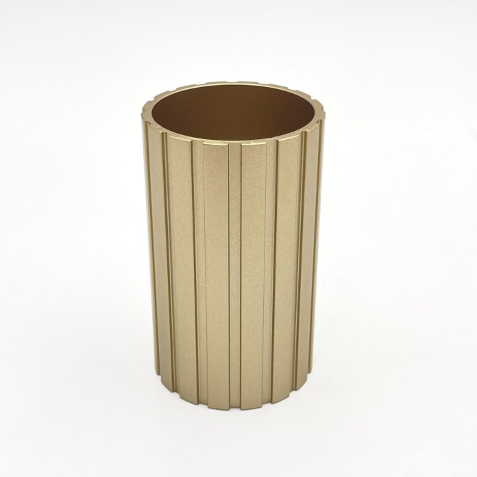 Odkryj, jak niewielki detal może całkowicie odmienić Twoje wnętrze. Ta wyjątkowa lampa łączy nowoczesny design z funkcjonalnością, tworząc atmosferę pełną stylu i przytulnego światła. Jej ryflowana metalowa powierzchnia subtelnie odbija światło, dodając wnętrzu głębi i charakteru.
